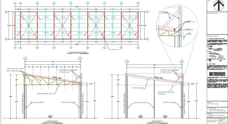- Análisis y diseño de vigas principales y secundarias, así como placas de conexión.